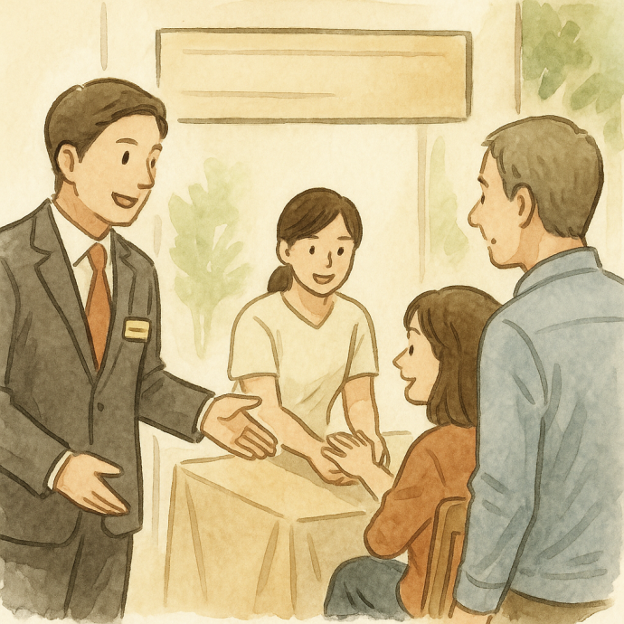 - お帰りの際に、自然な会話の中でご感想をいただける