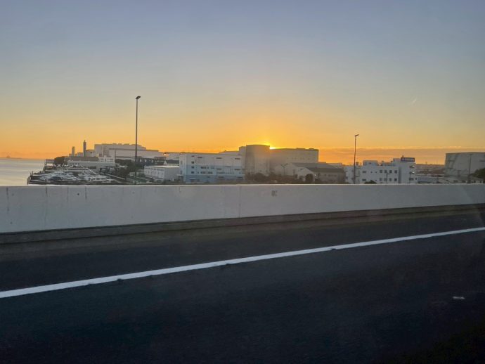 海の上の道を走りながら、少しずつ空が明るくなっていき、